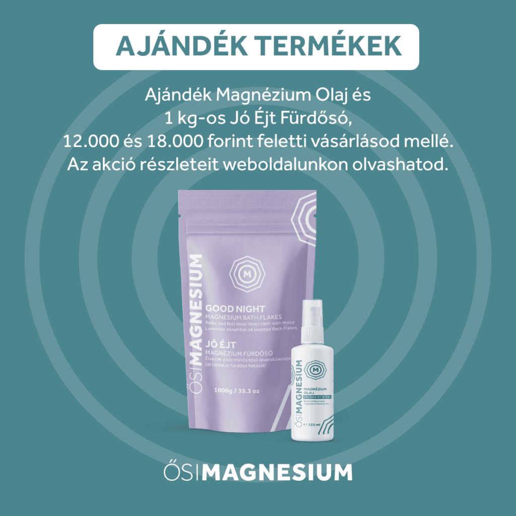 November 3–9. között minden 12.000 Ft feletti rendelés mellé ajándékba adunk egy 💧 érzékeny bőrre kifejlesztett Ősi Magnesium Olajat.